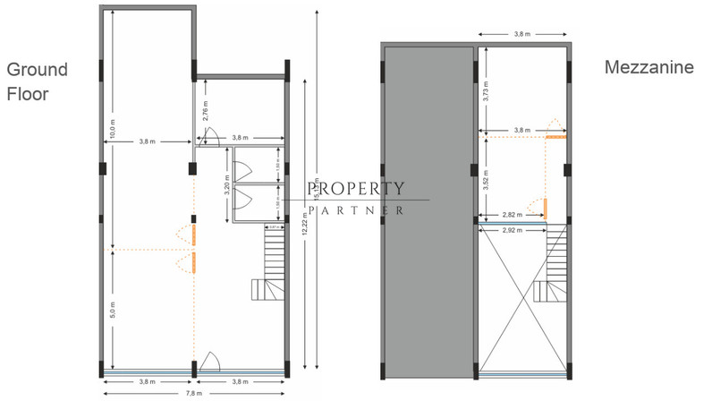 The mezzanine level can be configured as either one larger office or two separate offices, adapting easily to different team structures or management needs.